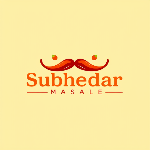 Professional logo design. Design a logo for spices manufacturing company. Name as "Subhedar Masale". Use color yellow, red or brown color. Make mustaches using of red chillies.