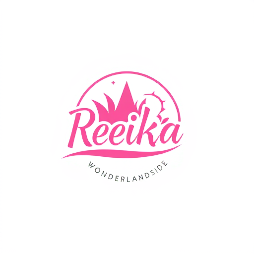 Professional logo design. Buatkan brand logo reika_wonderlandside dengan perpaduan warna pink white