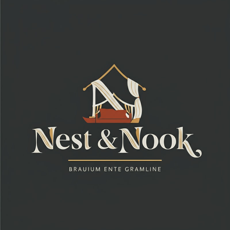 Modern Instagram logo for "Nest & Nook". Simple icon of a house outline merged with flowing curtain and sofa silhouette. Flat design, warm earthy tones (terracotta, beige, charcoal). Friendly, cozy, and premium.