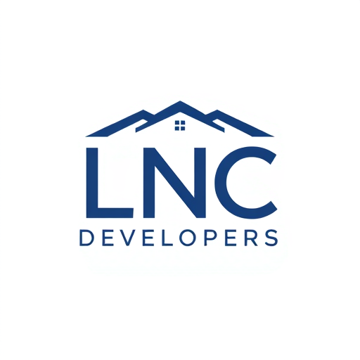 Professional logo design. A stylish and attractive logo for LNC Developers. The text ‘LNC’ should be designed in a creative, connected style where each letter flows into the next. The letter N should give a subtle architectural or roof-like feel, while L and C connect smoothly to form an elegant monogram. Minimal vector design, bold and modern, dark blue and grey corporate color scheme, highly professional and unique.