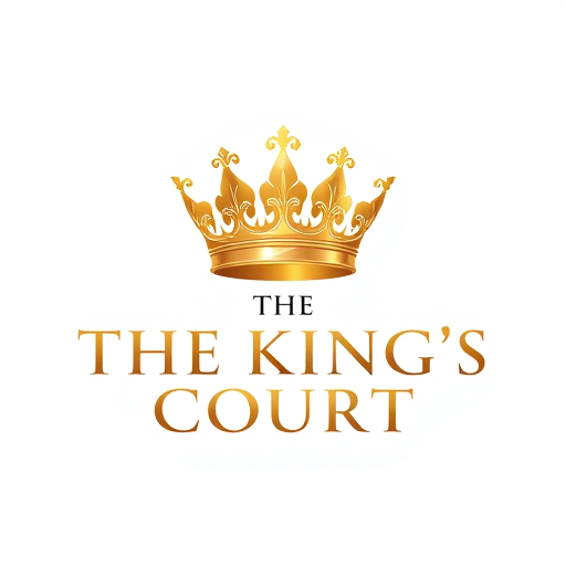 Professional logo design. luxurious logo design featuring a golden crown with elegant details, placed above the text 'THE KING’S COURT' in bold, serif, uppercase font with a metallic gold gradient.