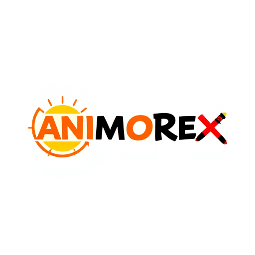 Professional logo design. Create a flat vector, illustrative-style wordmark logo design for an anime recommendation site named 'Animorex', where the 'O' is replaced by a circular manga speech bubble with small radiating lines, and the 'X' features crossed katana swords as the letter strokes. Use sunset orange (#FF8C42) for the speech bubble, crimson red (#DC143C) for the katana 'X', and midnight black (#000000) for other letters against a white background. Do not show any realistic photo detail shading.