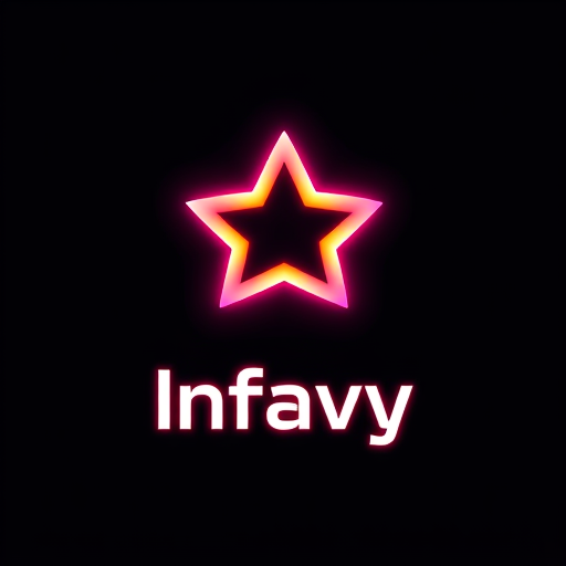 Professional logo design. “Create a modern and stunning logo for Infavy using a glowing star-shaped gradient icon as the base. The star should have smooth edges with a vibrant pink-to-orange neon gradient and a glossy 3D look. Add the brand name ‘Infavy’ below the icon in bold, futuristic typography with a slight glow, perfectly balanced with the star. The overall style should be sleek, premium, and eye-catching, suitable for a tech and entertainment platform. Use a dark background so the glowing colors pop.”