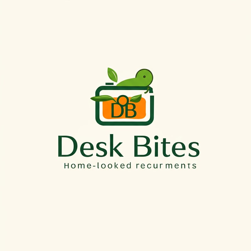 A clean, minimalist design with the full name: Desk Bites and a monogram: DB. ○ The logo should convey homemade food with an office-friendly look. ○ Use simple icons like a lunchbox, tiffin, or desk elements (like a keyboard).