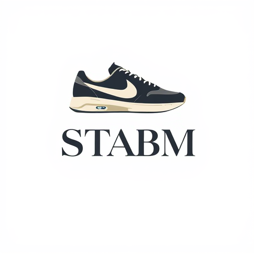 Professional logo design. Letterform for a premium and elegant sneaker brand named "STABM": A sophisticated, abstract NIKE sneaker suggesting speed and elevated style, deep charcoal, and a hint of off-white, A sleek, modern sans-serif typeface with subtle sharp edges to echo the brand initial, Modern, minimalist, luxury, with subtle art deco influences, A clean, geometric representation with a focus on sharp lines and balanced negative space, White background.