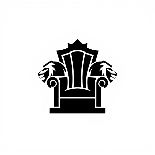Professional logo design. Create a minimalistic, iconic logo featuring a high-backed throne silhouette with two stylized lion heads facing outward on each armrest The throne and lion heads should be symmetrical and balanced, focusing on simplified details that convey regality, power, and sophistication. The logo should have a modern and professional style, suitable for digital and print use as a brand symbol. the logo whos showing a identity of power