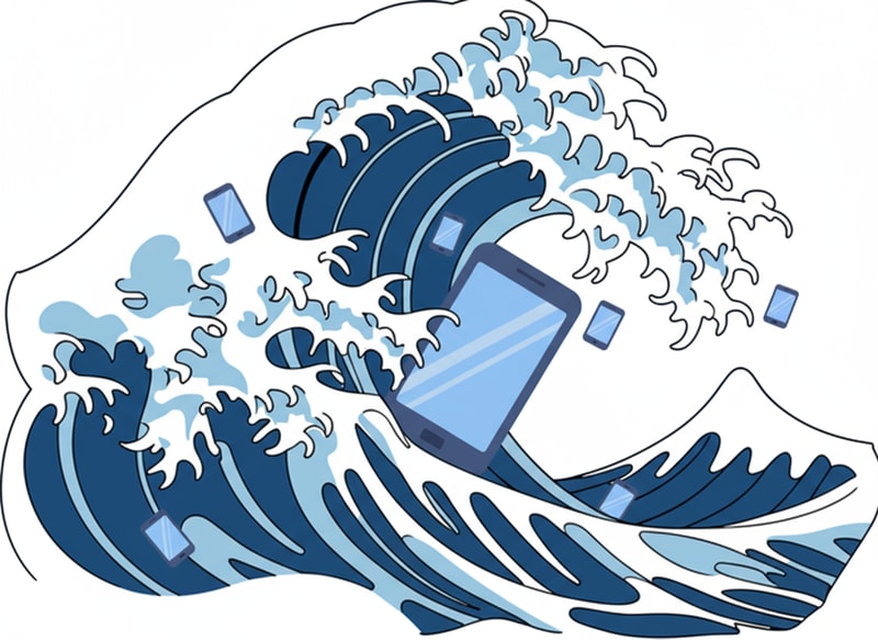 i want a logo where this mobile phone is flowing with the wave the mobile must be a littel short and i want mini mobiles on the sides