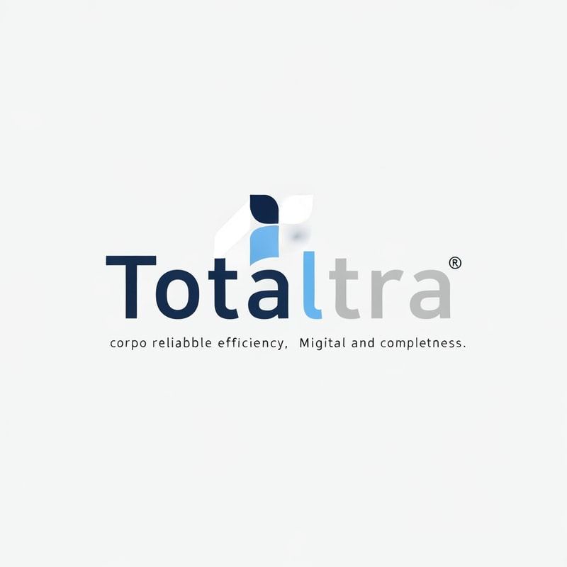 Logo for 'Totaltra' company. Modern, clean, and professional design. Incorporate shades of blue (e.g., navy, sky blue) and neutral colors (e.g., white, light grey, charcoal). The design should convey reliability, efficiency, and completeness. Minimalist aesthetic, sans-serif typography. Suitable for digital and print use."