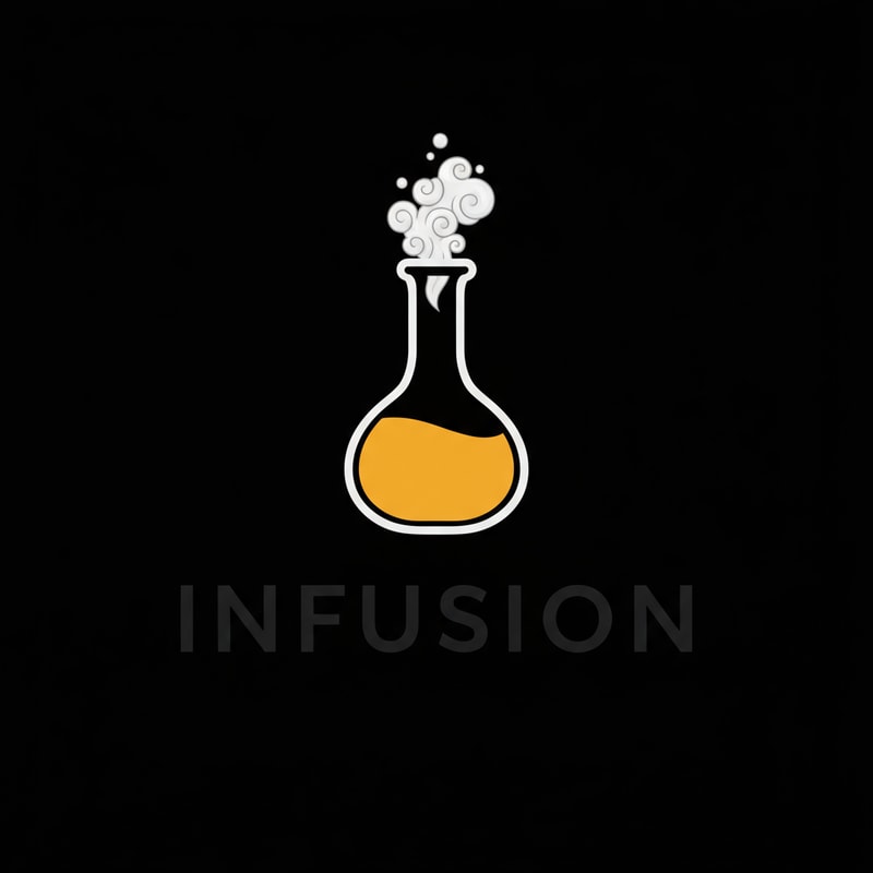replace the glass alembic look with something slightly more abstract, remove the ying yang look of the liquid and replace it with a golden color, put the background in black and the outlines in white