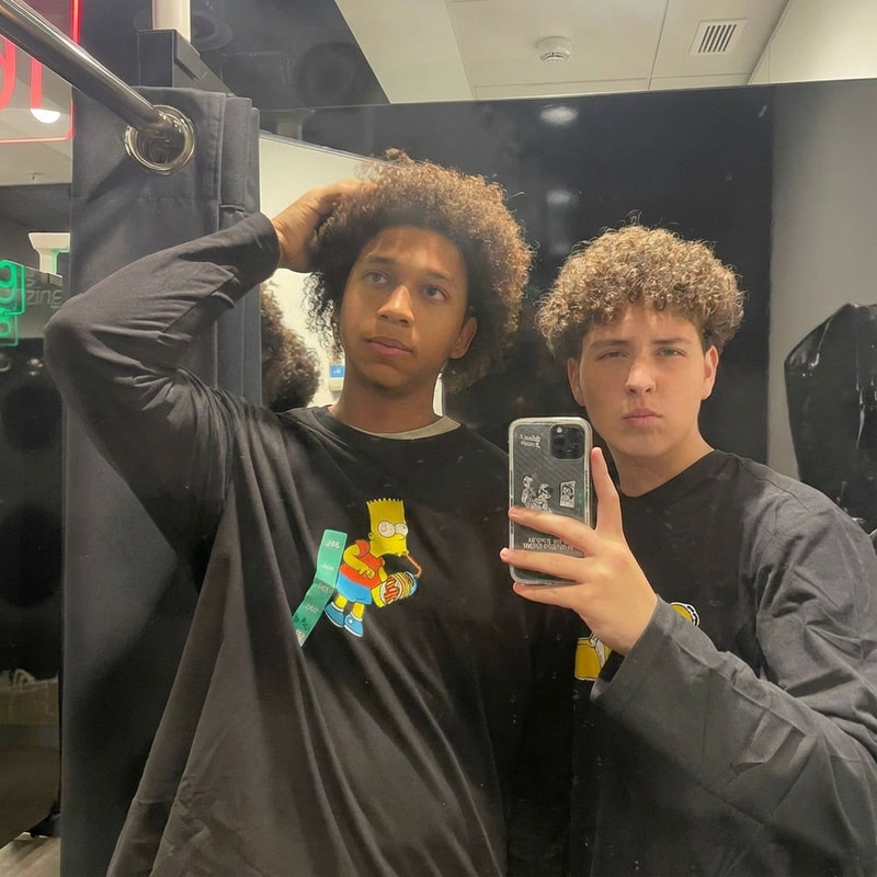 quiero que al chico de la izquierda parezca mas delgado y sin cambiar caras