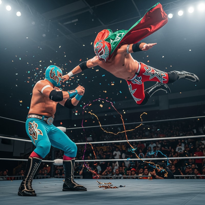 crea una imagen SIN texto , en formato para redes, acerca de la lucha libre mexicana